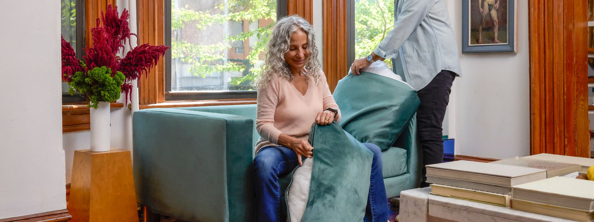 Refresh your sofa, sectional, or chair with washable, replaceable slipcovers in PFAS-free recycled velvet, hemp, and poly fabrics.