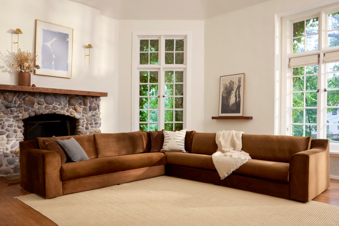 Elevate your entertaining experience with our Corner Sectionals, designed to accommodate more guests without sacrificing style or comfort. Crafted with care, the frame is constructed from SFI certified hardwood plywood and wrapped in Cocolok for durability and sustainability. CertiPUR-US certified high resiliency foam seat cushions and memory foam core back pillows provide long-lasting and comfortable support. Upholstered in our selection of Recycled Velvet & Upcycled Poly fabrics as well as natural muslin, these sectionals are both elegant and inviting, making them the ideal choice for hosting gatherings.
